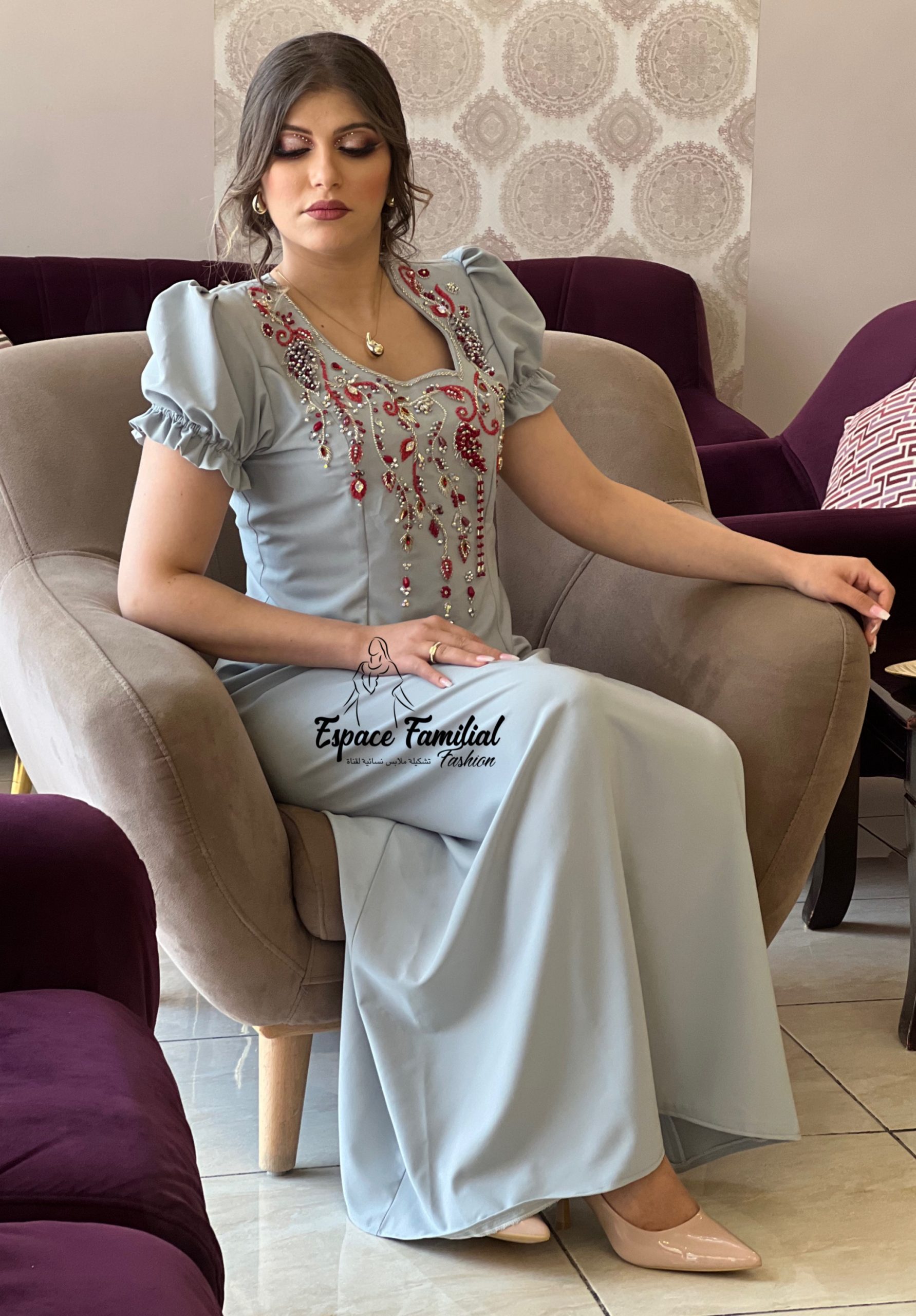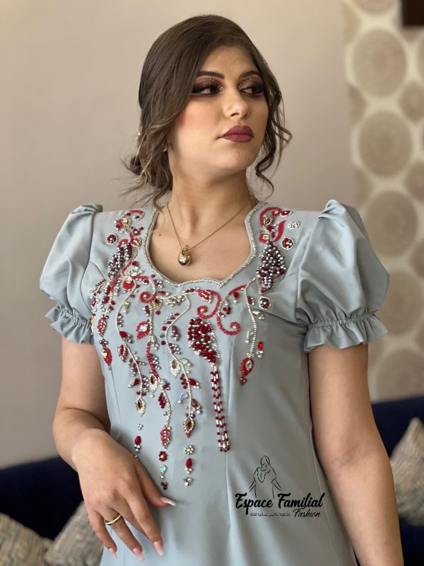 بلمسة عصرية التي وضعت على القندورة الجزائرية صممنا لك افخم فستان بحجارة اصلية حرة وتطريز بالابرة والخيط بقماش كريب ميلكا ذو النوعية الفاخرة لتتميزي بارتدائه في حفلاتك المميزة وكل افراح النجاح والاعراس والعقيقة وحفلات الختان وافراح البيت الجديد